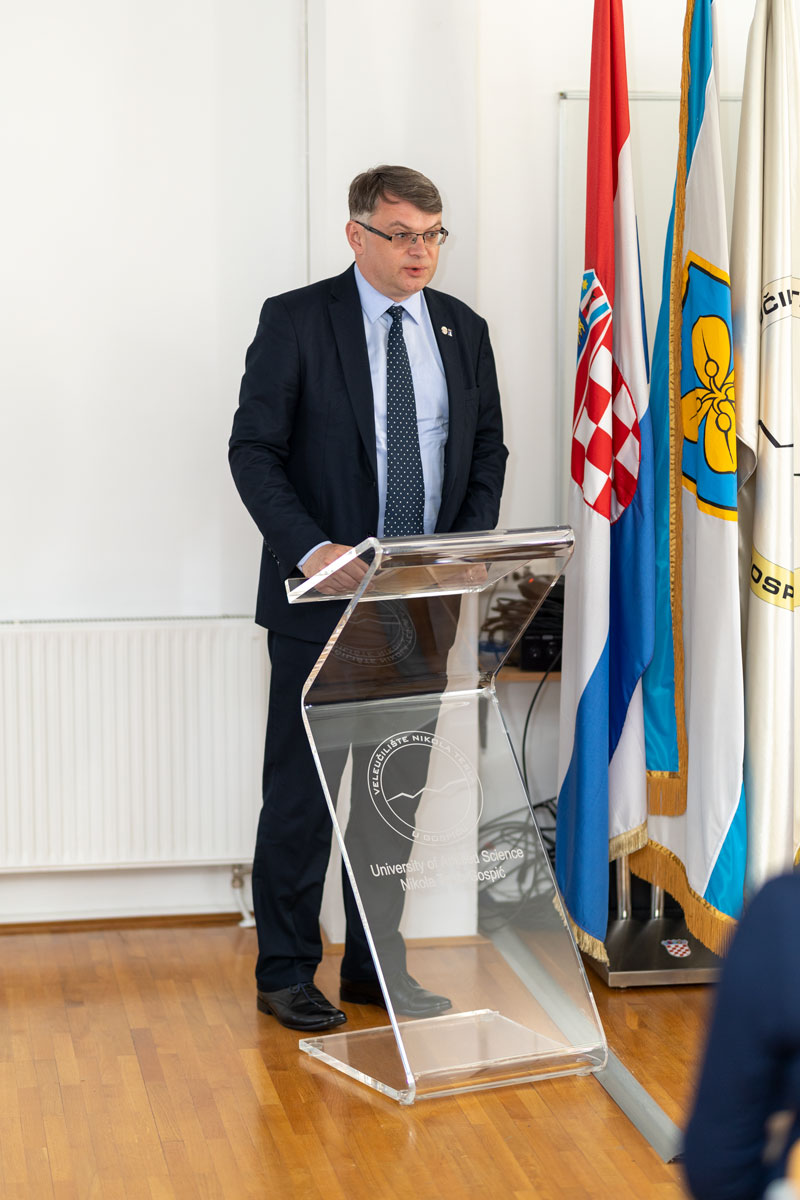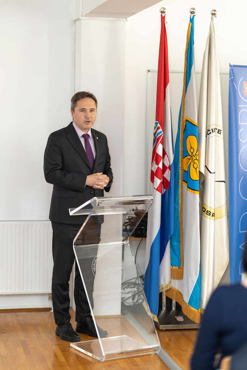 Uvodne riječi na ovom značajnom događaju uputili su brojni uglednici među kojima su bili dekanica Veleučilišta “Nikola Tesla” u Gospiću doc.dr.sc. Vlatka Ružić, dekan Filozofskog fakulteta Sveučilišta u Mostaru izv.prof. dr.sc. Dražen Barbarić, Veliki Meštar Družbe Braća Hrvatskoga Zmaja prof.dr.sc. Mislav Grgić, potpredsjednik Matice Hrvatske dr.sc. Mario Jareb, rektor Sveučilišta Sjever prof.dr.sc. Marin Milković, župan Ličko-senjske županije Ernest Petry, prodekan za razvoj i međunarodnu suradnju doc.dr.sc. Branislav Šutić te biskup Gospićko-senjske biskupije mons.mr. Zdenko Križić.